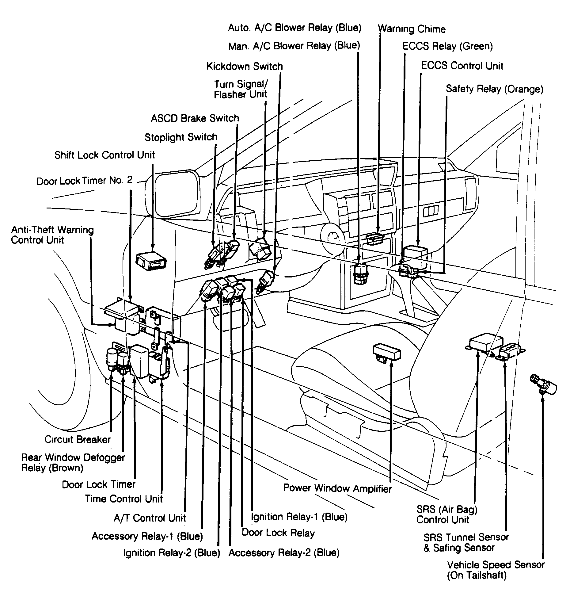 | Shift Lock Control Unit | Behind dash, left of steering column. See Figure . | |