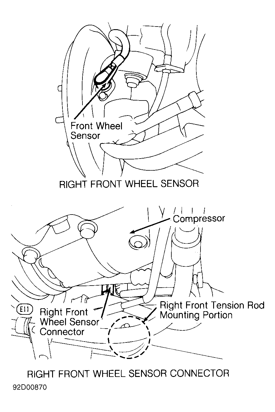 For removal and installation of front wheel sensor, see