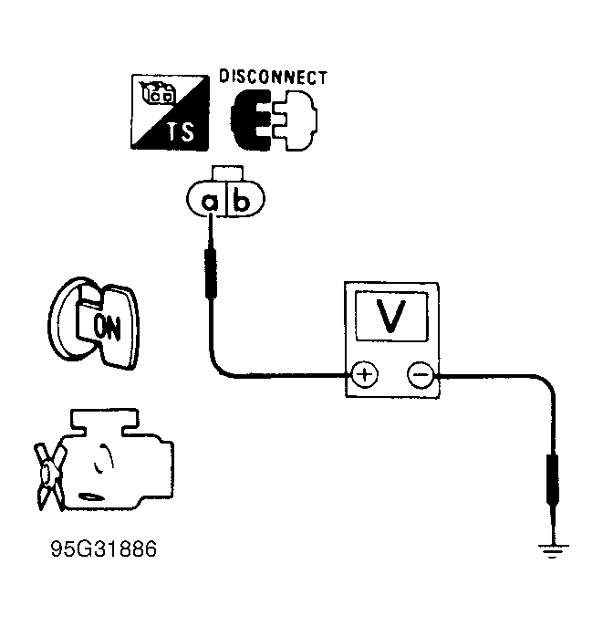 . If voltage is approximately 5 volts, go to next step. If voltage is not as specified, repair harness or connectors as necessary.