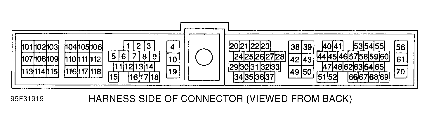 2. Using a DVOM, touch negative lead of voltmeter to a good ground. Using positive lead of voltmeter, backprobe each ground terminal at ECM connector. With vehicle running, voltmeter should indicate less than one volt. If voltmeter reading is greater than one volt, check for open, corrosion or loose connection on ground lead.