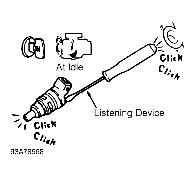 Using a listening device, search for circuit which does not produce injector operating sound at idle. See Fig 1 . - Search For Malfunctioning Circuit Using CONSULT