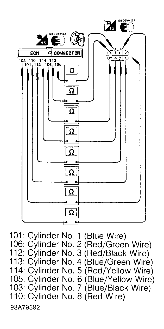- EFI terminal "u" and ECM terminal No. 103 (Blue/Black wire).