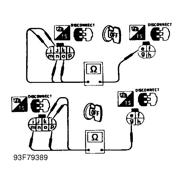 - Terminal "e" (Red wire) and terminal "j" (Blue/Black wire).