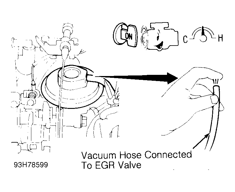 . If vacuum is not present, go to next step. If vacuum is present, inspect EGR valve and EGRC backpressure transducer valve. See I - SYSTEM/COMPONENT TESTS