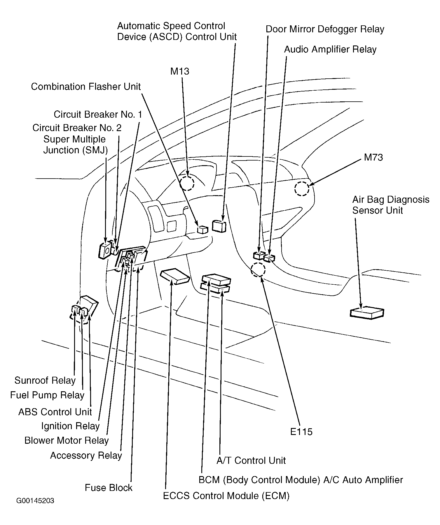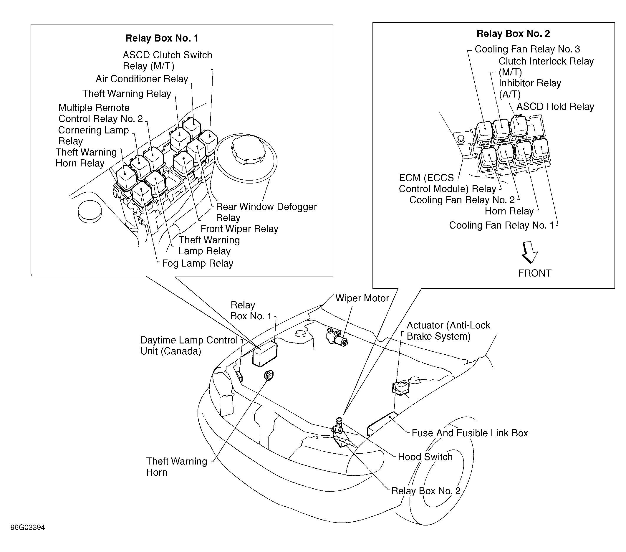 | Relay Box No. 2 | Left side of engine compartment. See Figure . |