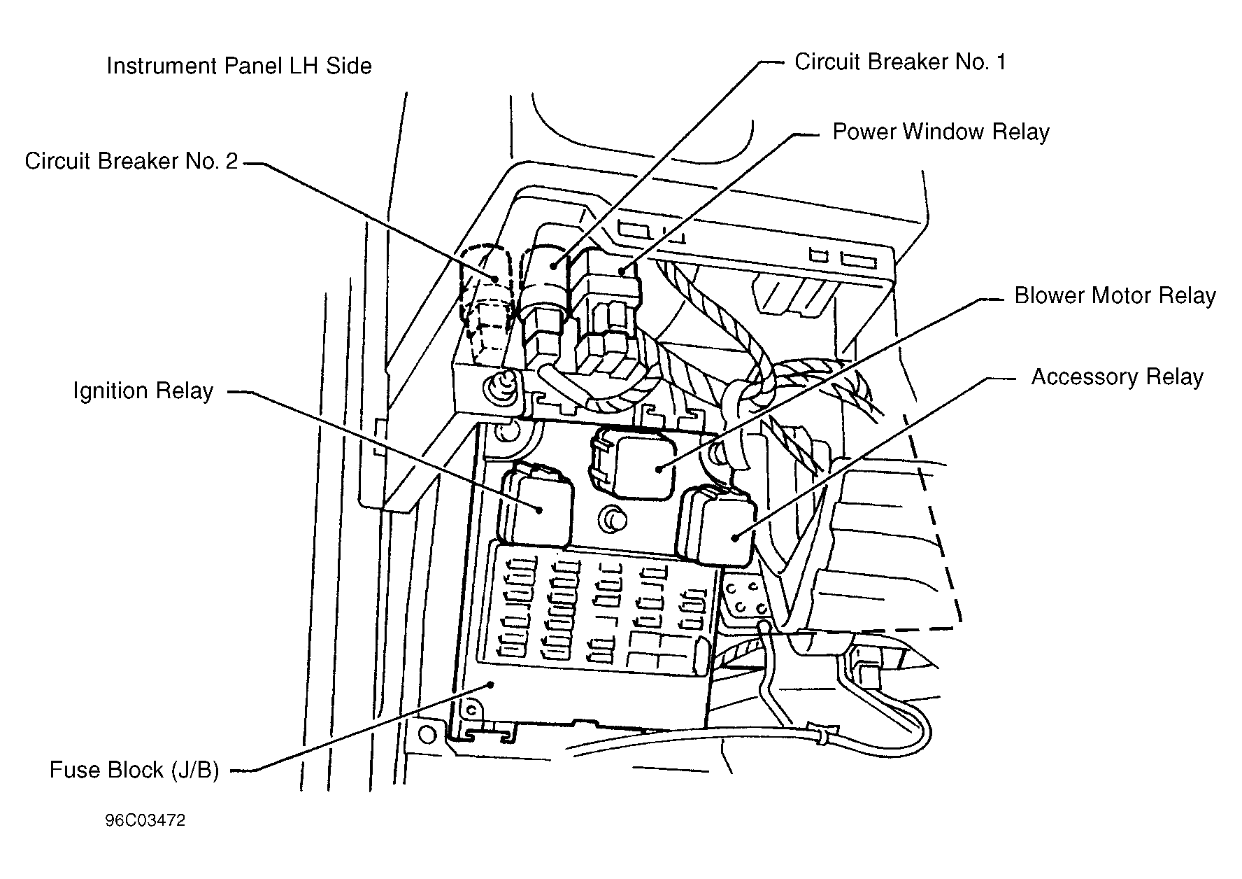 | Circuit Breakers 1 & 2 | On top of fuse block (J/B). See Figure . |