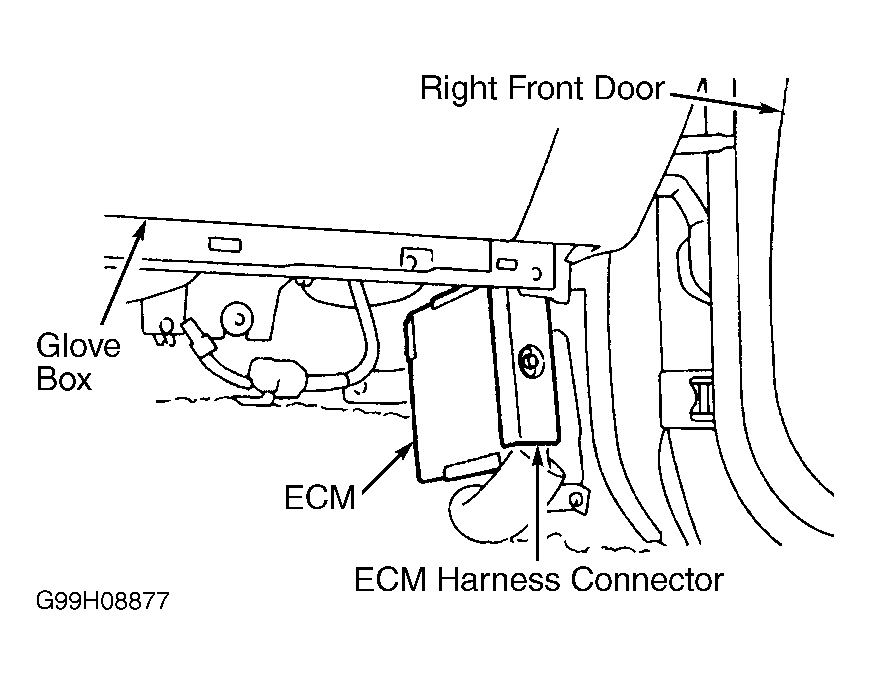 9. Turn ignition off. Loosen and retighten engine ground bolts. See Fig 4. Disconnect PCM harness connector. See Fig 1. Check continuity between ground and PCM harness connector terminals No. 121, 122, 125, 126, 127 and 128. If continuity exists, go to next step. If continuity does not exist, repair open ground circuit.