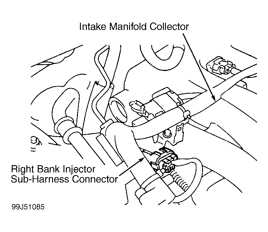 4. Remove intake manifold collector. See 3.0L V6 - I30 article in ENGINES. Disconnect right bank injector harness connectors. Check continuity of the following: