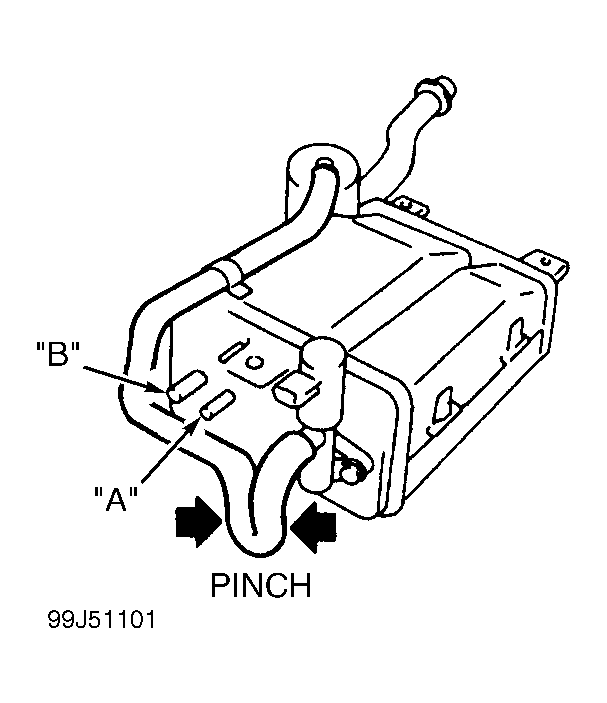Remove EVAP canister. Plug vent hose and blow air into port "A". Air should flow freely out of port "B". See Fig 1 or Fig 2