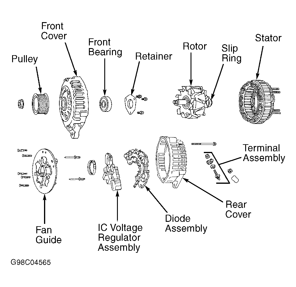 . A ring is used to lock outer bearing race in generator rear cover. It may be necessary to heat bearing housing to remove cover. Use a 200-watt soldering iron to heat housing. DO NOT use heat gun, as it may damage diodes.