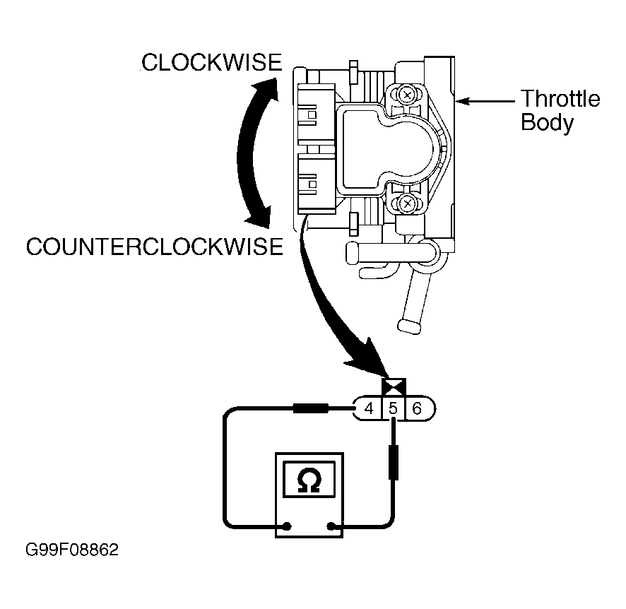 - Ensure continuity is as specified with appropriate feeler gauge installed. If continuity is not as specified, open and close throttle 2-3 times and recheck continuity. If continuity is still not as specified, loosen TP sensor mounting screws, and rotate TP sensor body until continuity is as specified when each feeler gauge is inserted.