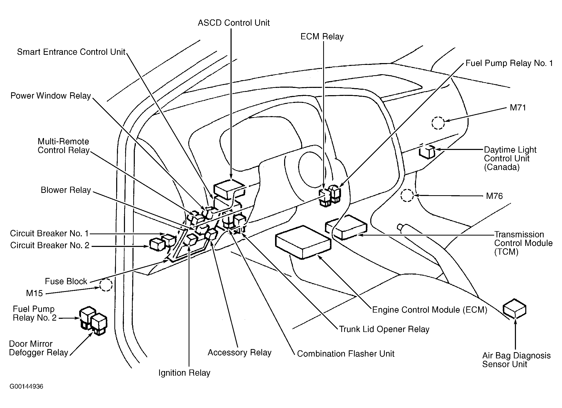 | Fuse Block | Behind dash, left of steering column. See Figure . |