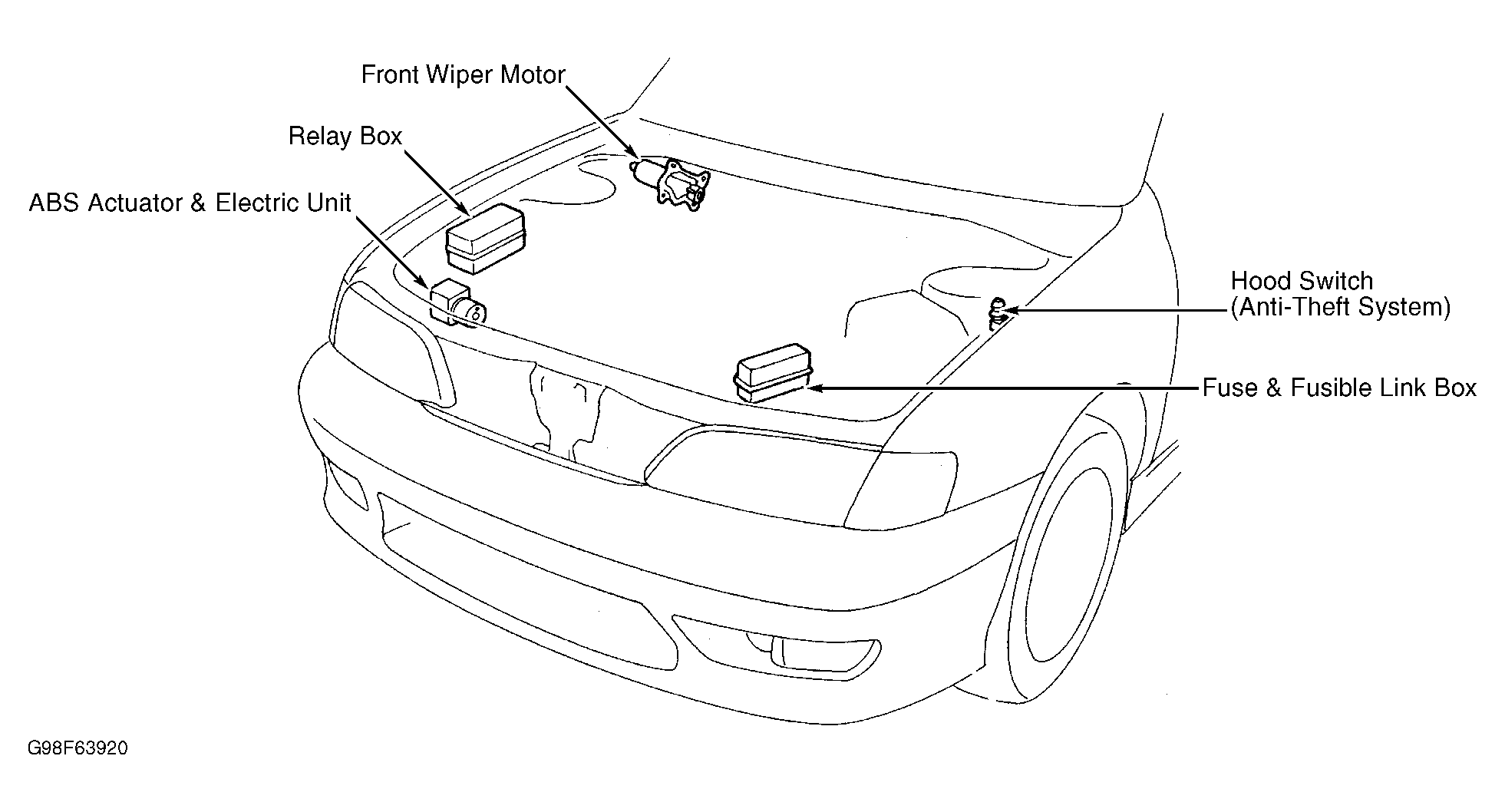 | Fuse & Fusible Link Box | Left front of engine compartment, next to battery. See Figure . |