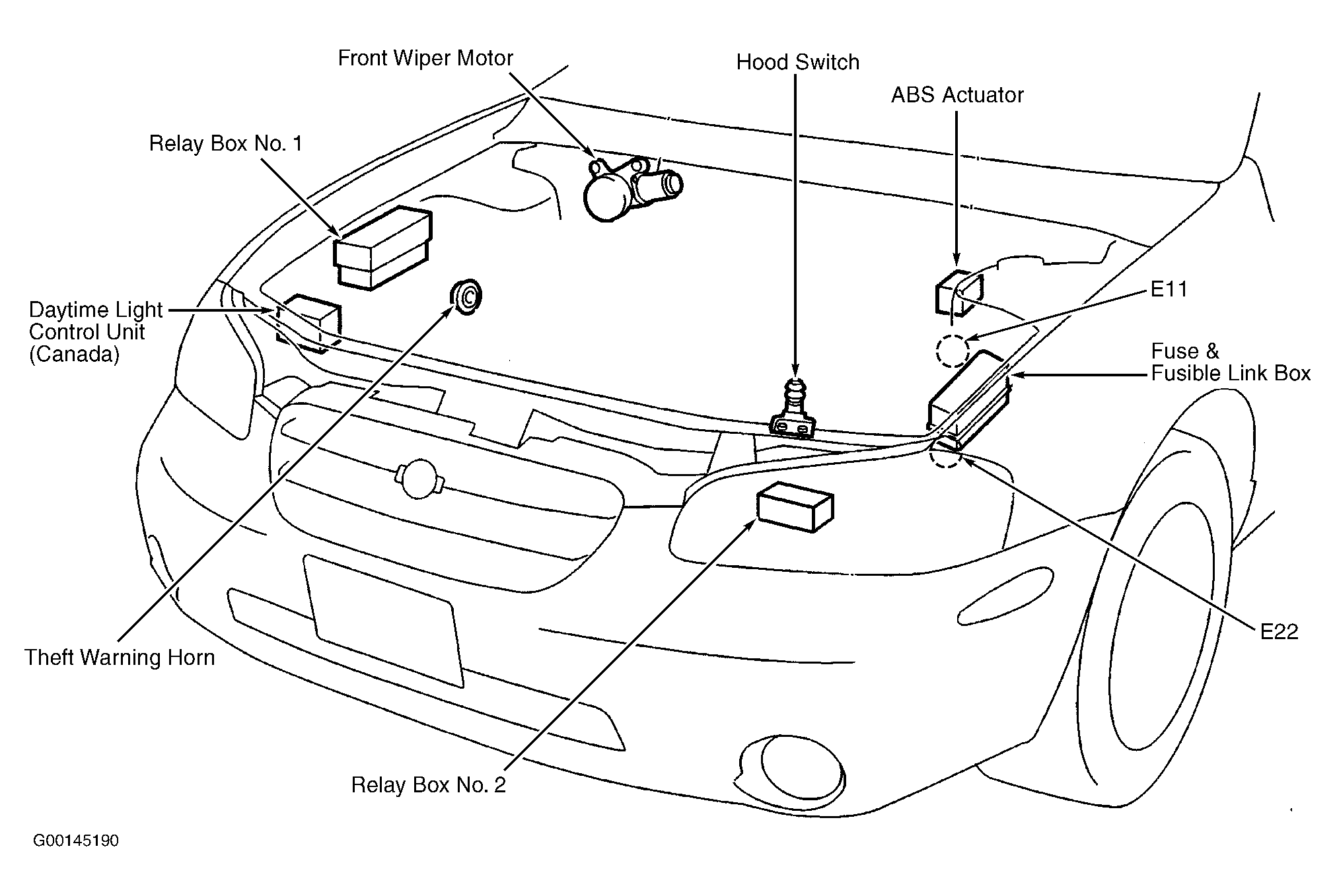 Relay Box No. 2 At left front corner of engine compartment. See Figure .