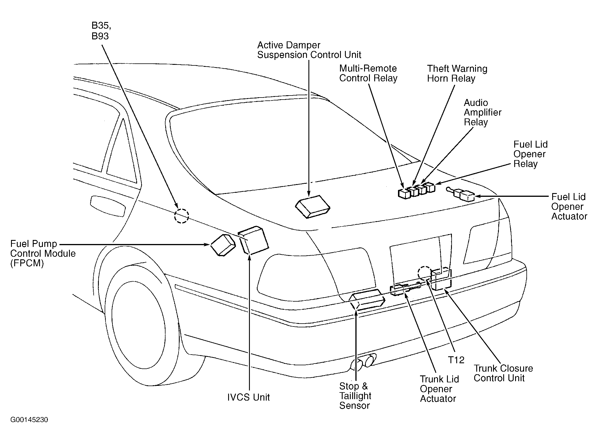 Trunk Closure Control Unit At center rear of luggage compartment. See Figure .