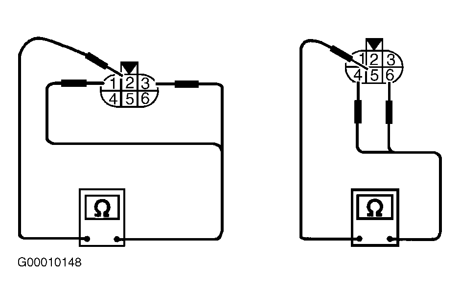 - Measure resistance between EGR-VCV terminals No. 2 and 1, No. 2 and 3, No. 5 and 4, and No. 5 and 6. See Figure. Resistance should be 20.9-23.1 ohms at 68°F (20°C). If resistance is as specified, go to next step. If resistance is not as specified, replace EGR-VCV and retest system.