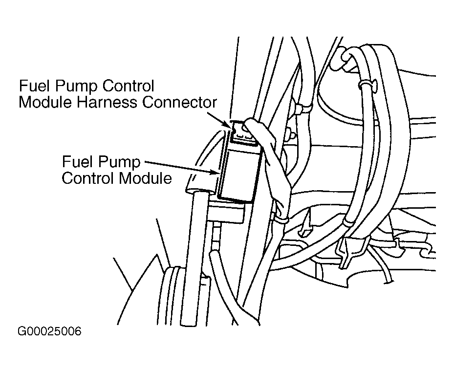 - Turn ignition off. Disconnect fuel pump, Fuel Pump Control Module (FPCM) and dropping resistor harness connectors. See Fig 1 and Fig 2. Fuel pump harness connector is located in bottom of trunk. Check continuity of Black/Yellow wire between fuel pump relay No. 1 harness connector terminal No. 5, FPCM harness connector terminal No. 3 and fuel pump harness connector terminal No. 1. Also check circuit for short to ground and short to voltage. Repair circuit as necessary and retest system. If circuit is okay, go to next step.