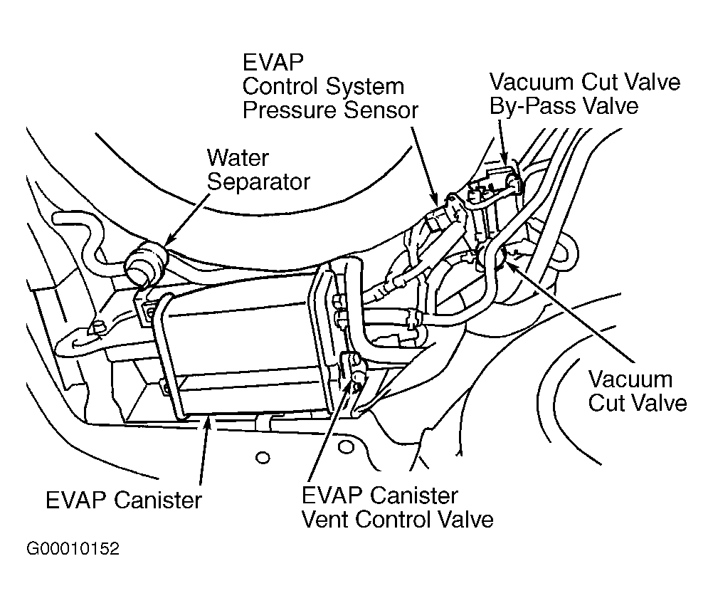 1. Inspect EVAP canister for cracks. Replace, if necessary and retest system. If EVAP canister is not cracked, go to next step.