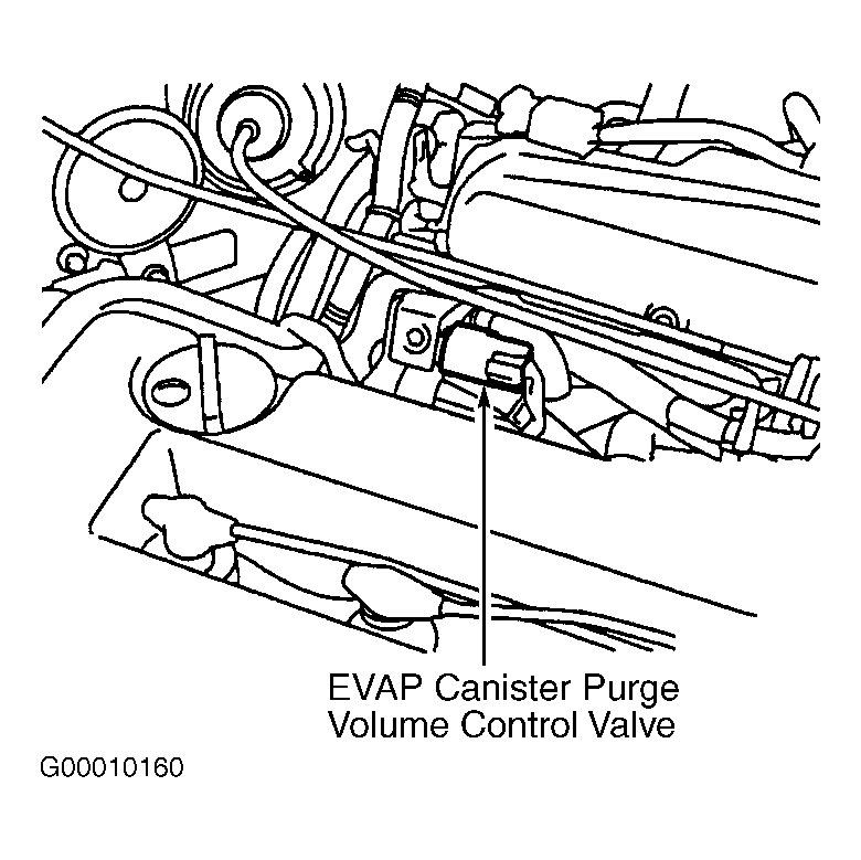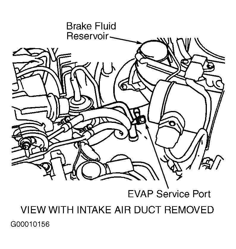 13. Check EVAP purge line for evidence of leaks. Repair as necessary and retest system. If no leaks are found, clean EVAP purge line with compressed air. Go to next step.