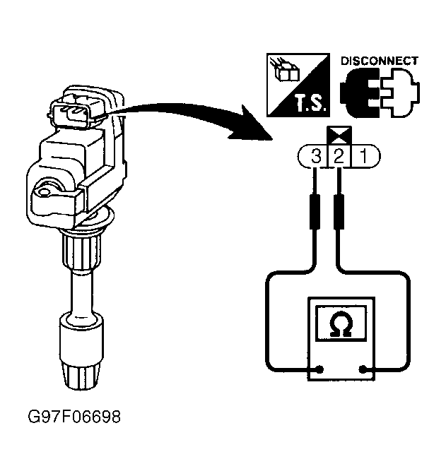 - Measure resistance between appropriate ignition coil terminals No. 2 and 3. See Fig 5. If resistance is more than zero ohms, go to next step. If resistance is zero ohms, replace ignition coil and retest system.