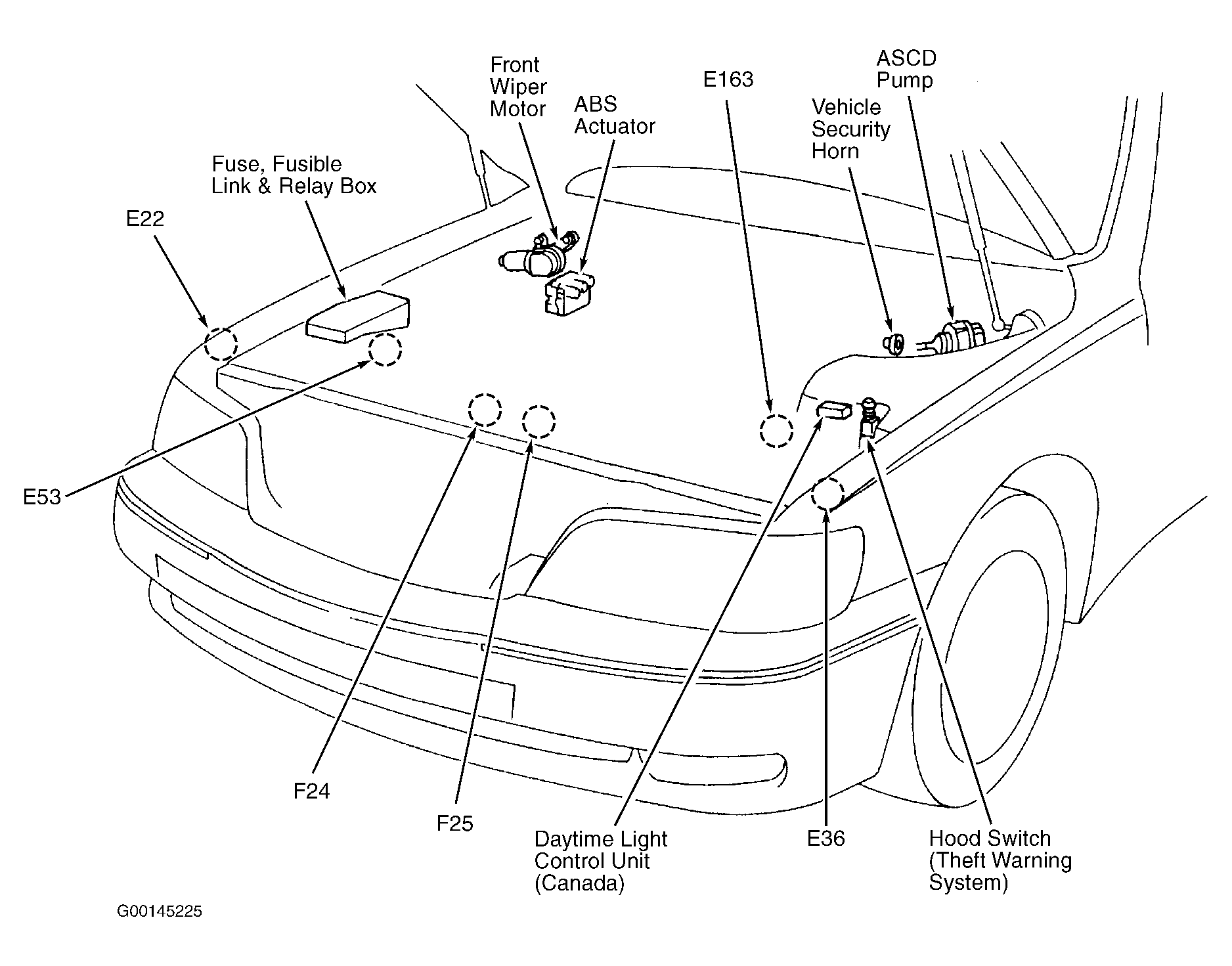 | Vehicle Security Horn | In engine compartment, on the left strut tower. See Figure . |