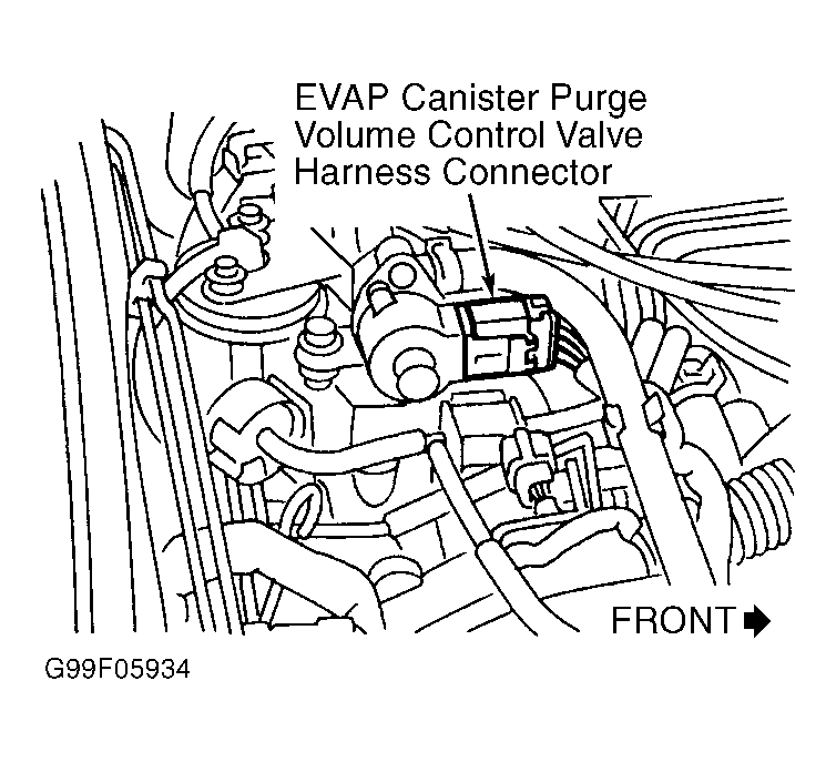 4. Disconnect EVAP-CPVCV harness connector. See Figure. Measure resistance between the following EVAP-CPVCV terminals: