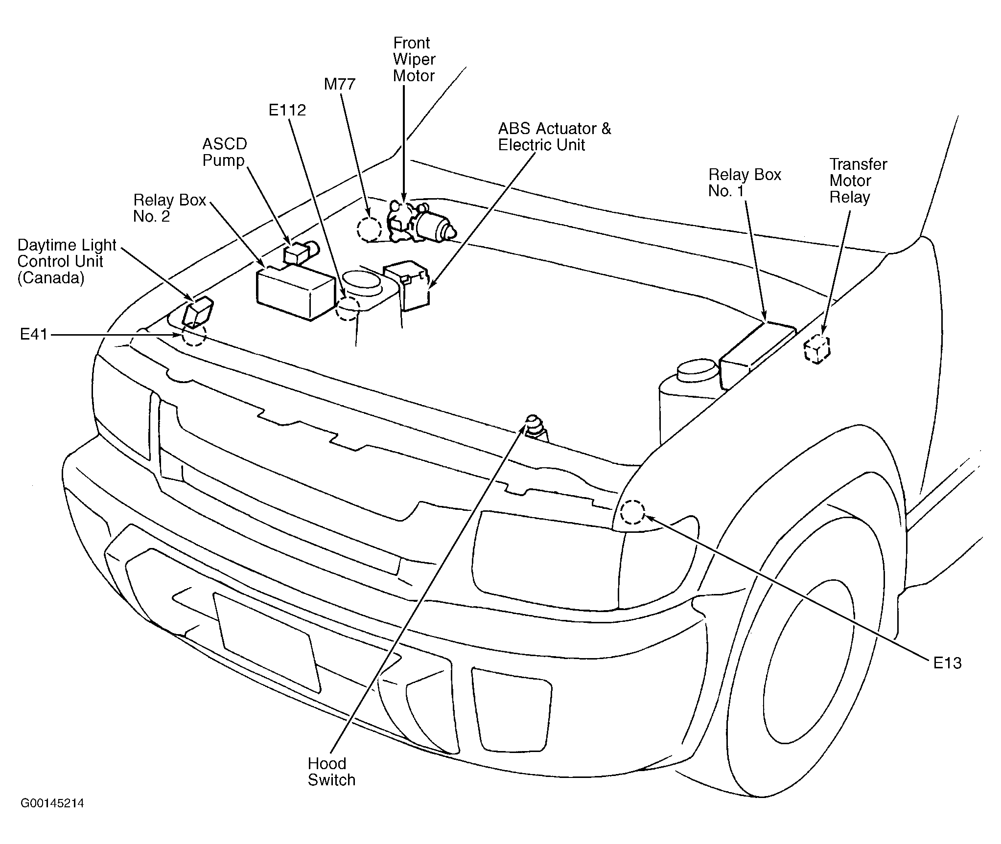 | Relay Box No. 1 | On left front fender well. See Figure . |