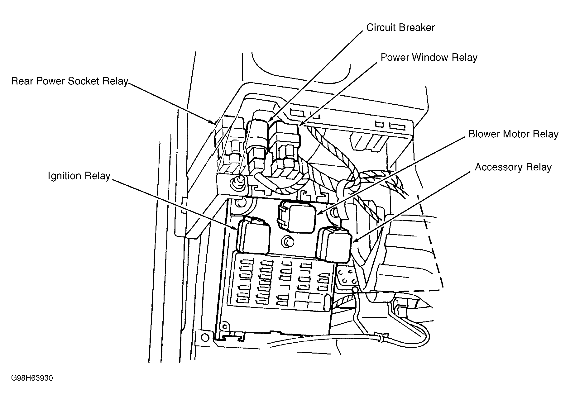 | Relay Box No. 2 | On right front fender well. See Figure . |