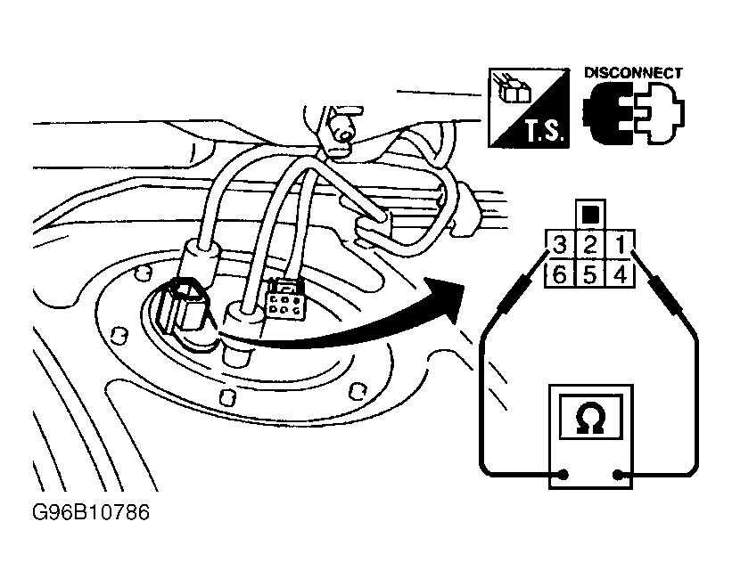10. Measure resistance between fuel pump terminals No. 1 and 3. See Fig 3. Resistance should be 0.2-5.0 ohms at 77°F (25°C). If resistance is as specified, go to next step. If resistance is not as specified, replace fuel pump.
