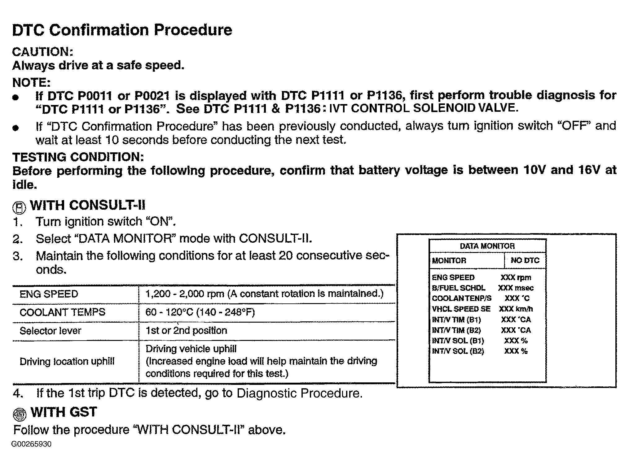 Fig 1: DTCs P0011 & P0021 Confirmation Procedure