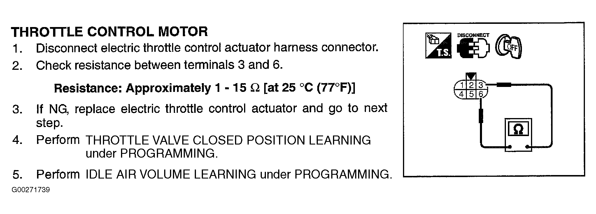 For throttle control motor testing, see