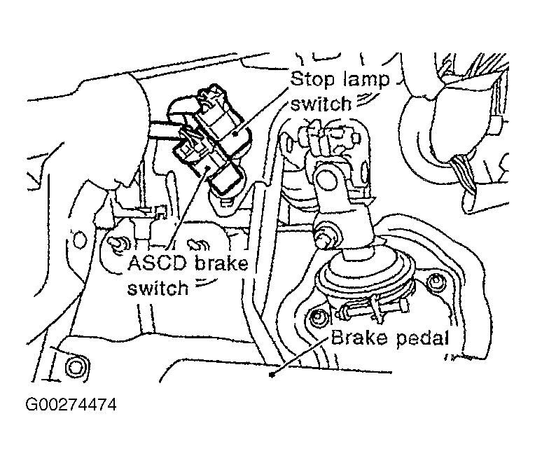 When the brake pedal is depressed, ASCD brake switch is turned OFF and stop lamp switch is turned ON. ECM detects the state of the brake pedal by this input of 2 signals (ON/OFF). See Fig 1. For more information, see appropriate CRUISE CONTROL SYSTEMS article in ACCESSORIES & EQUIPMENT.