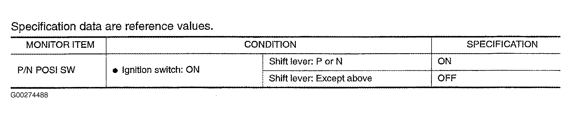 Data Monitor Mode Reference Values