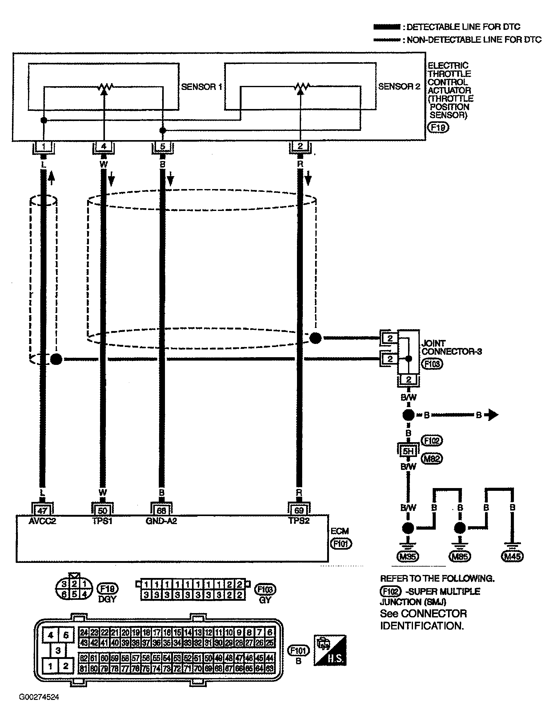 For DTC P2135 diagnostic procedure, related circuits and connector identification, see