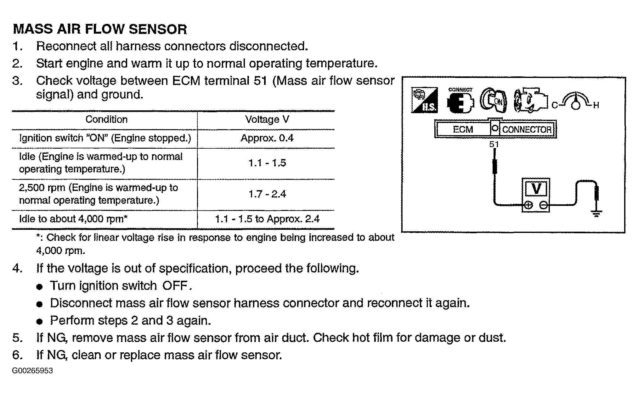 For mass airflow sensor testing, see