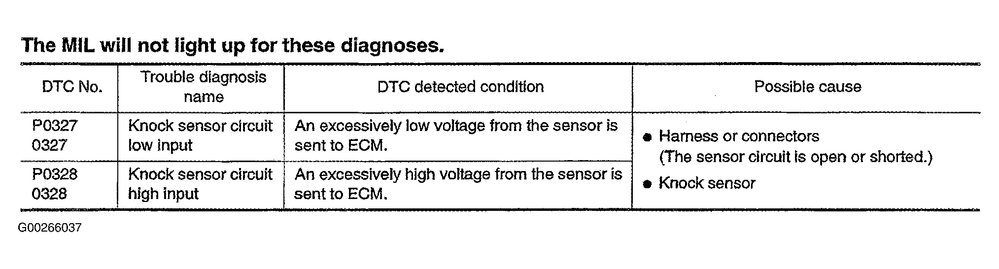 DTC P0327: Knock Sensor Circuit Low Input & DTC P0328: Knock Sensor Circuit High Input