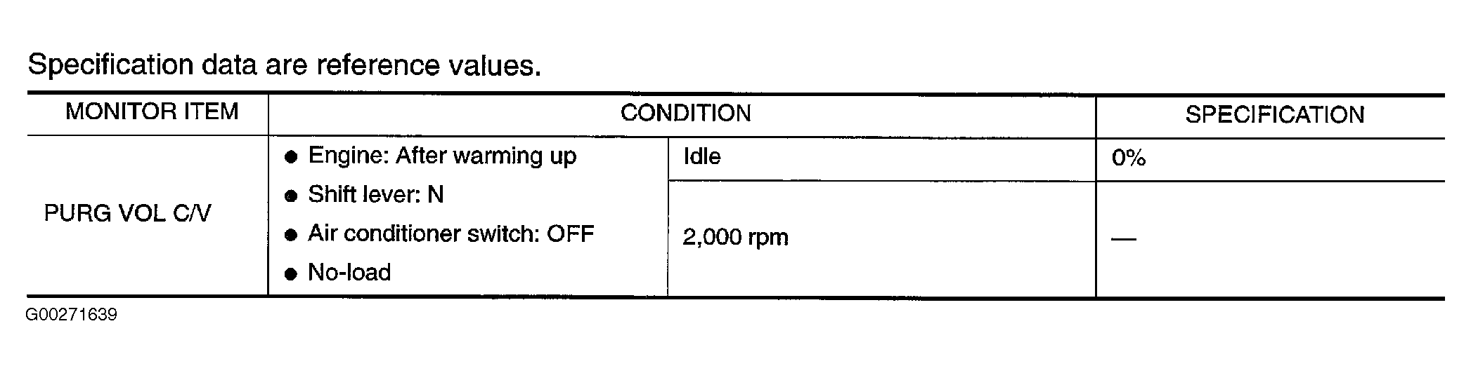 For EVAP canister purge volume control solenoid valve data monitor mode specification data, see Fig 1.