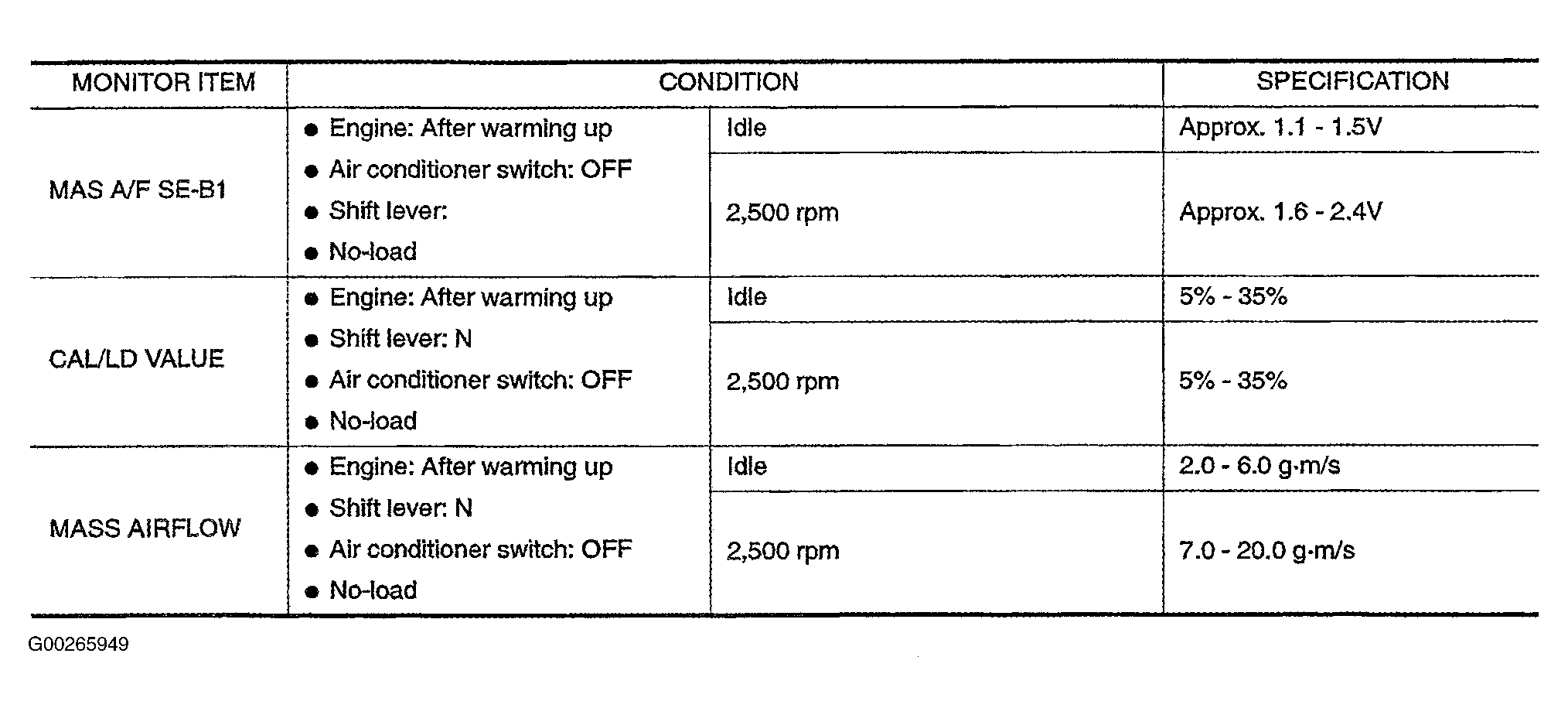 For mass airflow sensor circuit specification data, see