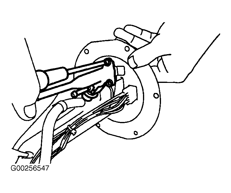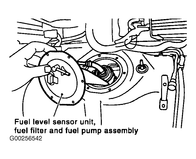 1. Pull out the fuel level sensor unit, fuel filter and fuel pump assembly. See Figure and Figure .