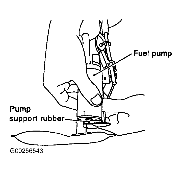 2. Remove the pump support rubber from the fuel level sensor unit, fuel filter and fuel pump assembly. See Figure.