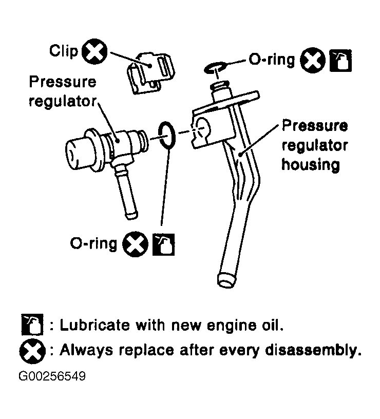9. Remove clip and disassemble pressure regulator. See Figure.