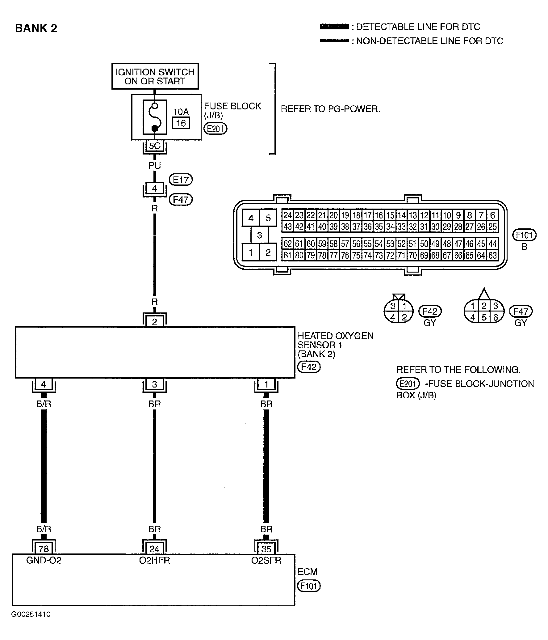 For wiring diagram, see Figure and Figure . For diagnostic procedure, see DIAGNOSTIC PROCEDURE under DTC P0133 OR P0153.