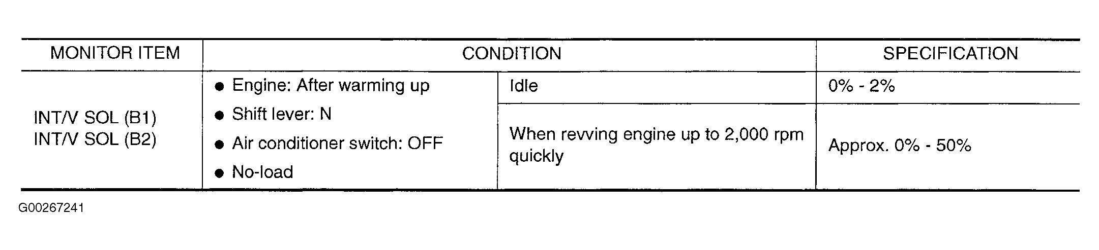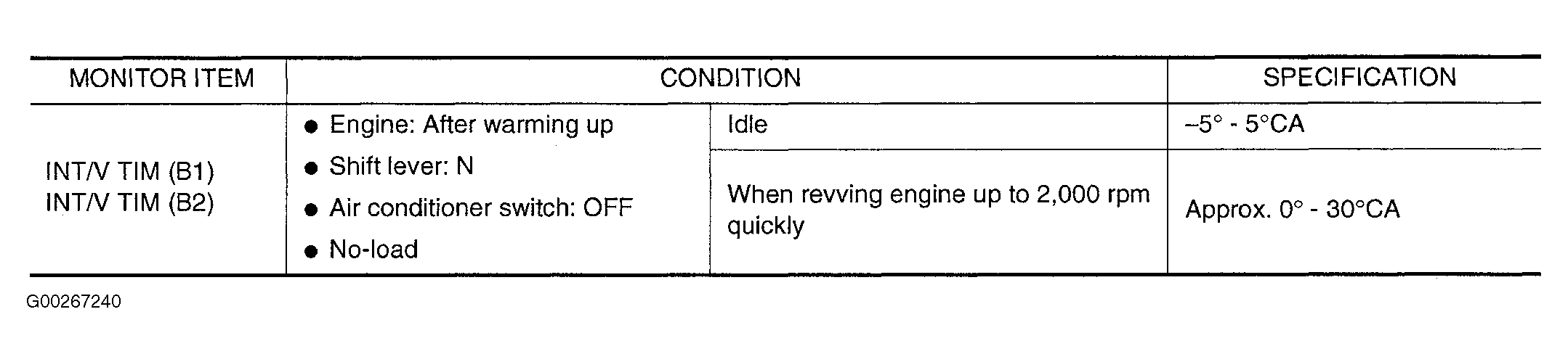 Fig 1: DTCs P0011 & P0012 Data Monitor Mode Reference Values (1 Of 2)