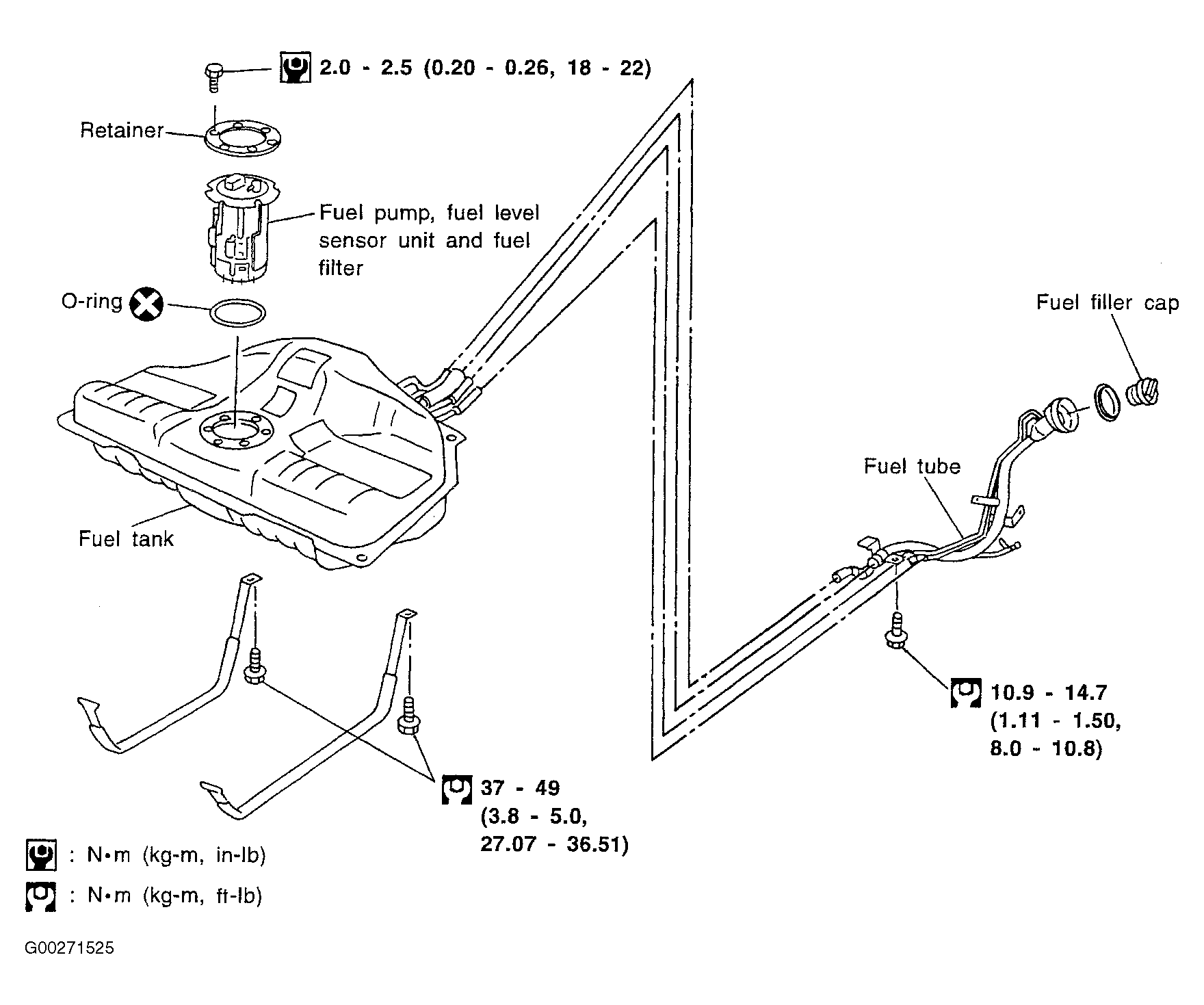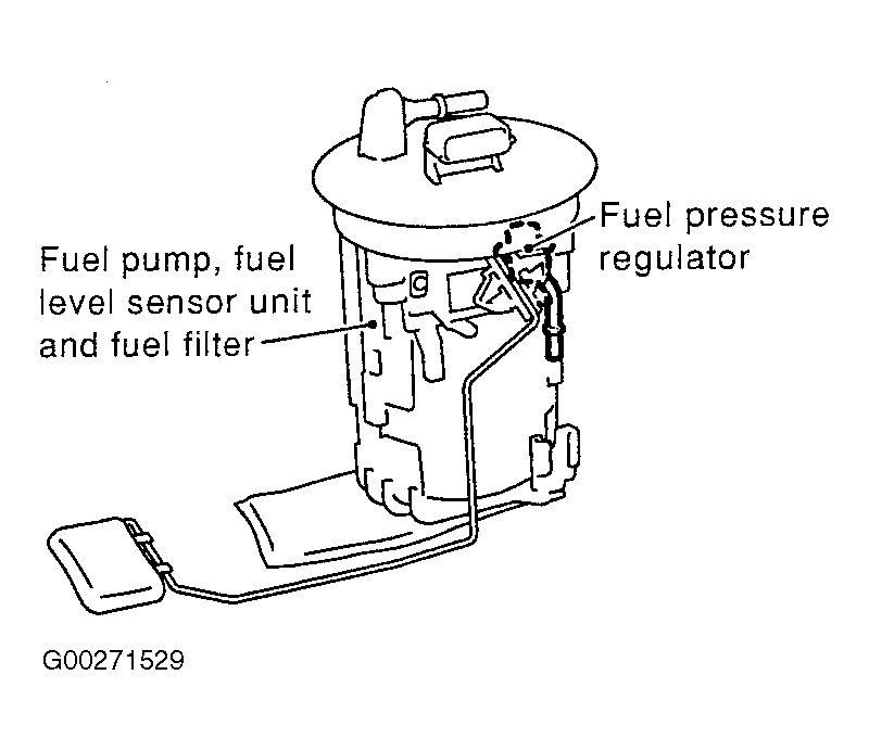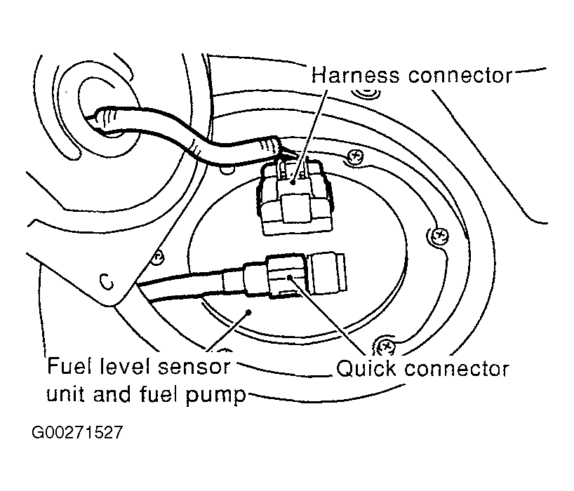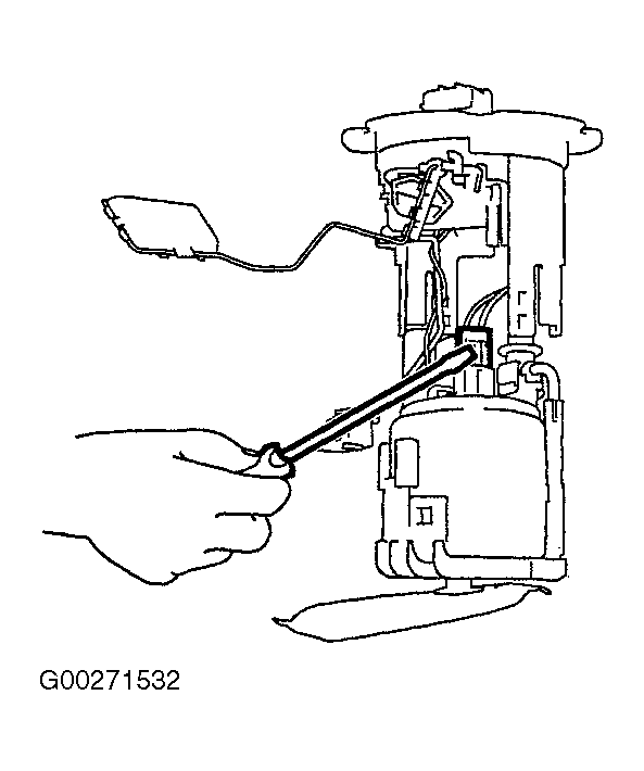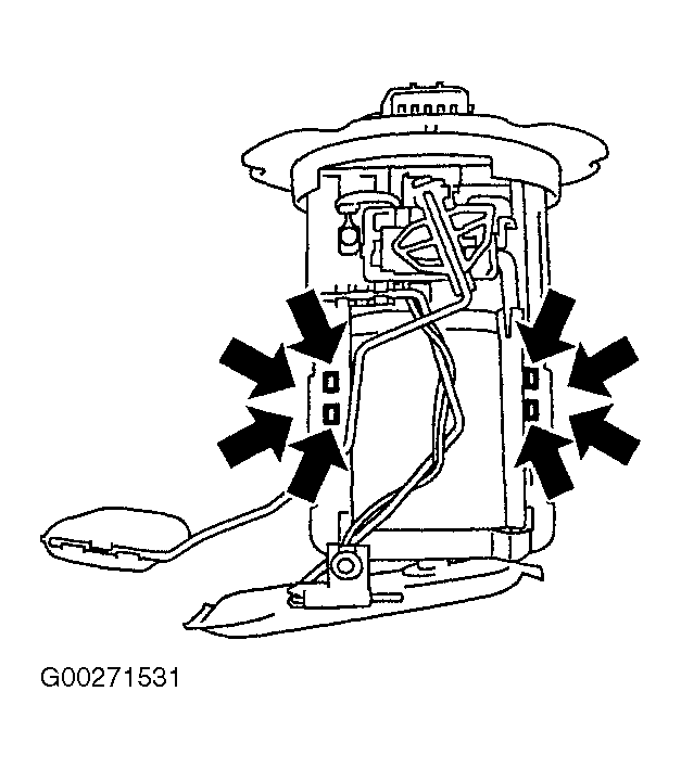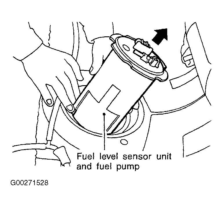 - Remove the fuel level sensor unit and fuel pump assembly. See Figure and Figure .