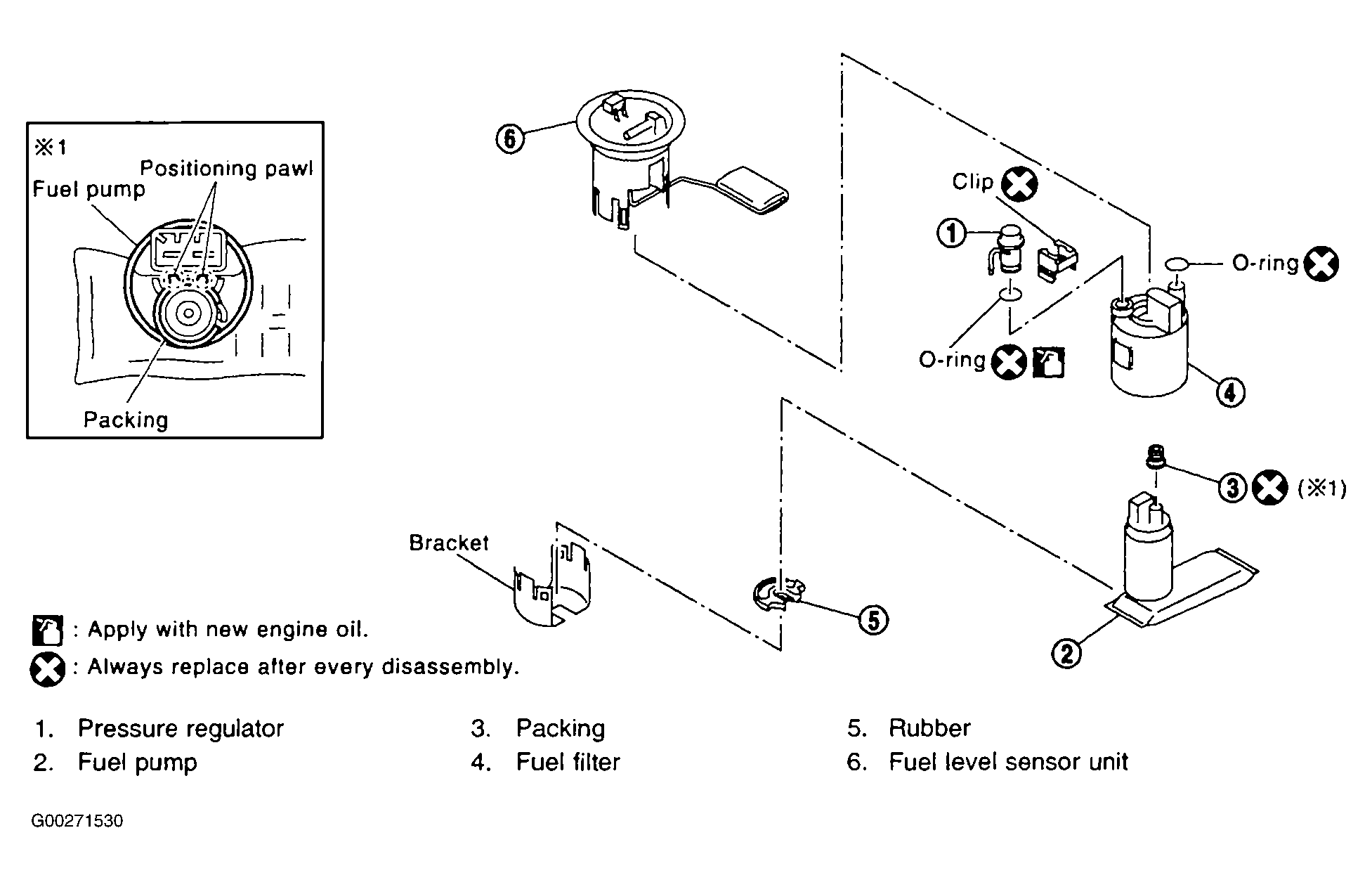- Remove packing from fuel pump. See Figure .