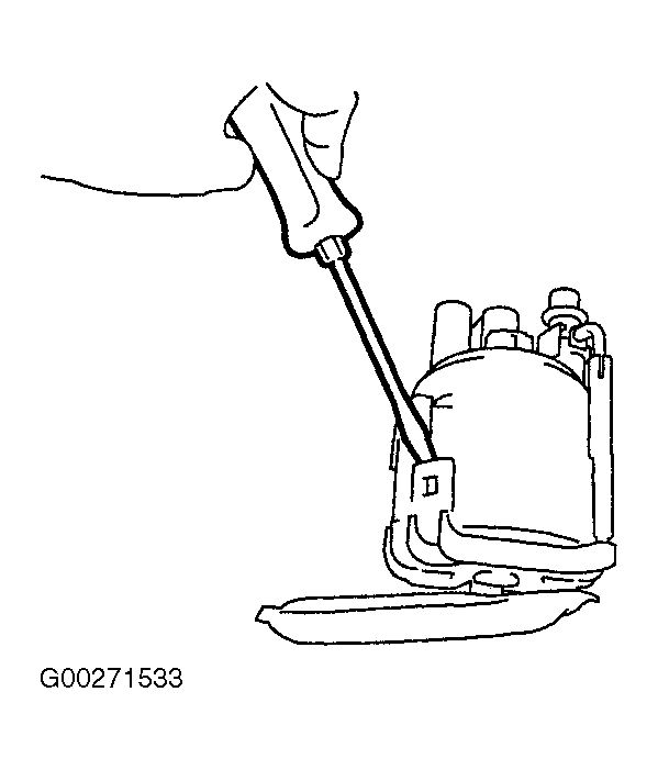 - Remove fuel filter from pump bracket. Using a screwdriver, remove the snap fit portion as shown in the figure. See Figure .