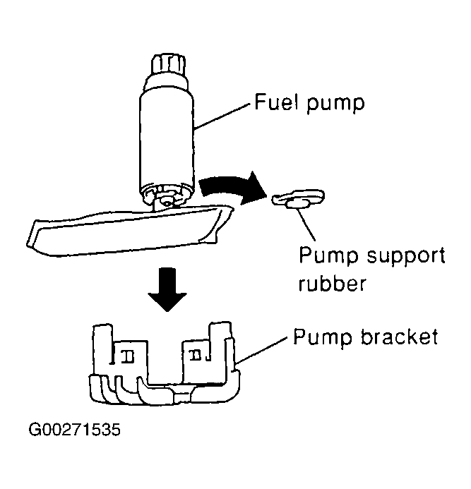- Remove the pump support rubber from the fuel pump. See Figure .