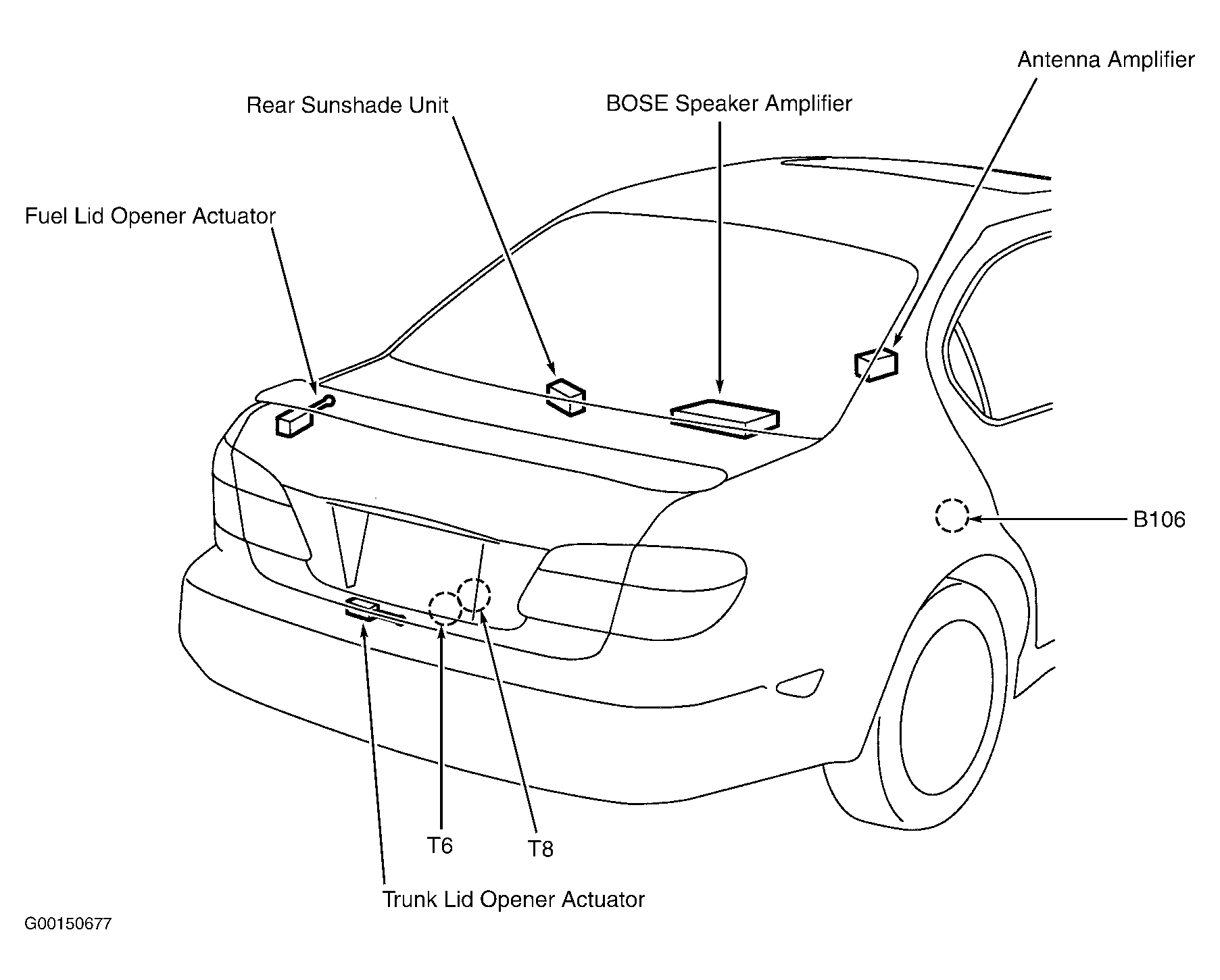 BOSE Speaker Amplifier Under rear parcel shelf. See Figure .