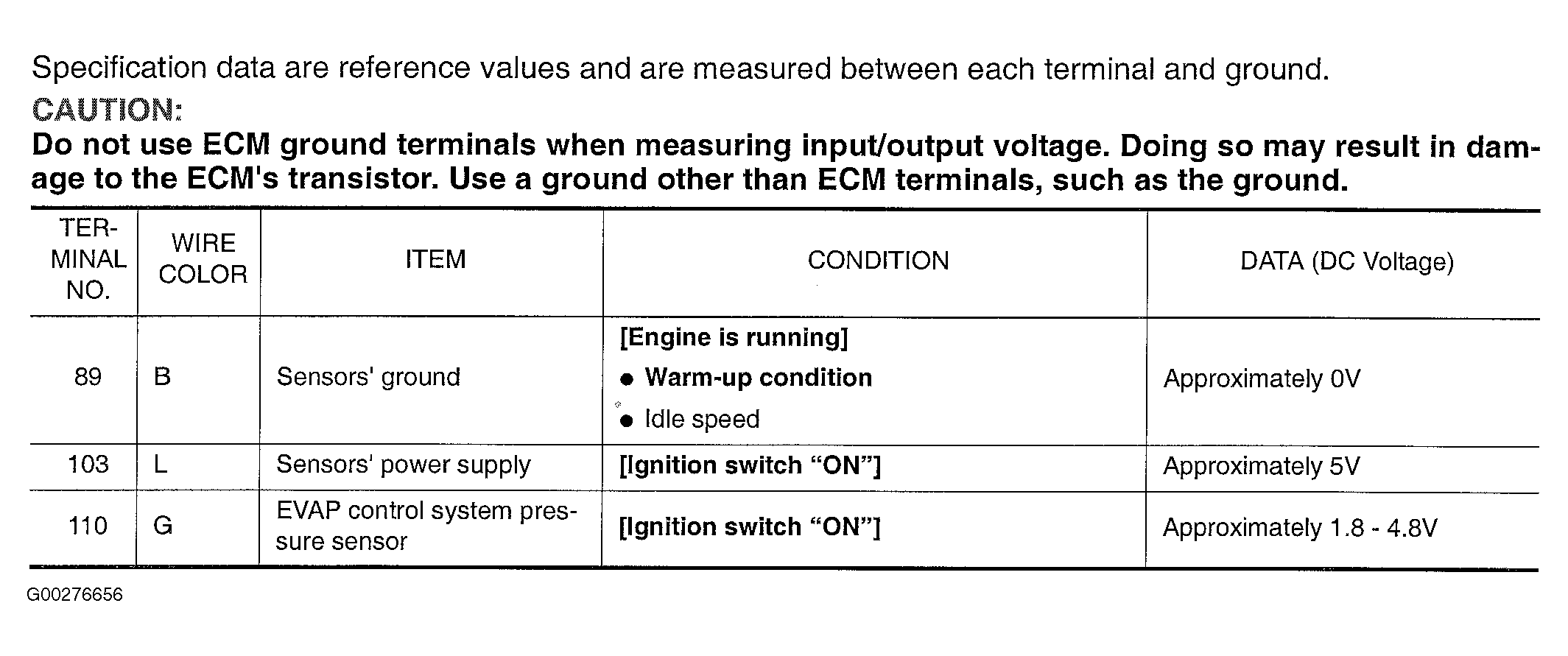 Wiring Diagram & Specification Data For EVAP Control System Pressure Sensor