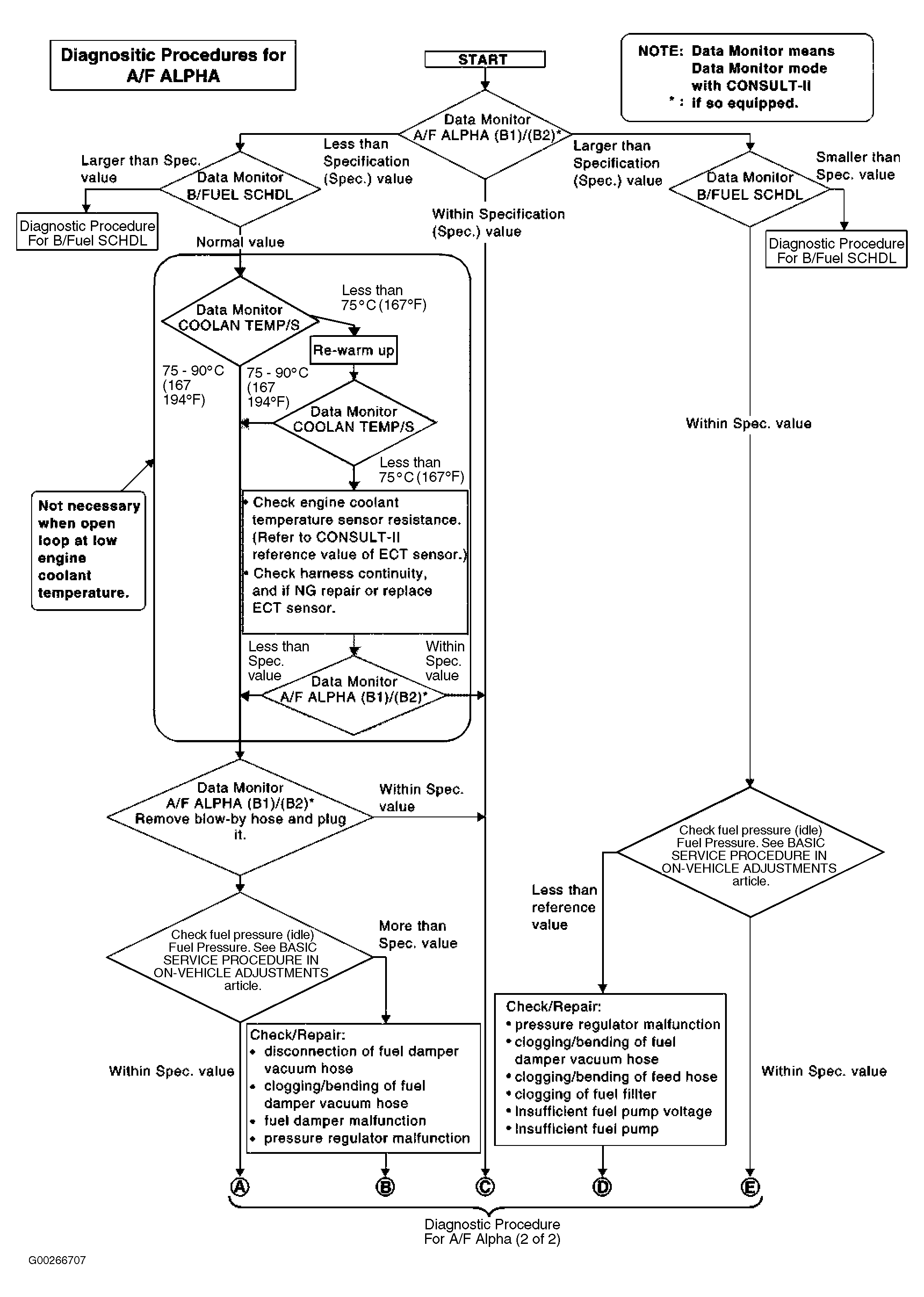 For A/F alpha and B/FUEL schedule diagnostic procedures, see